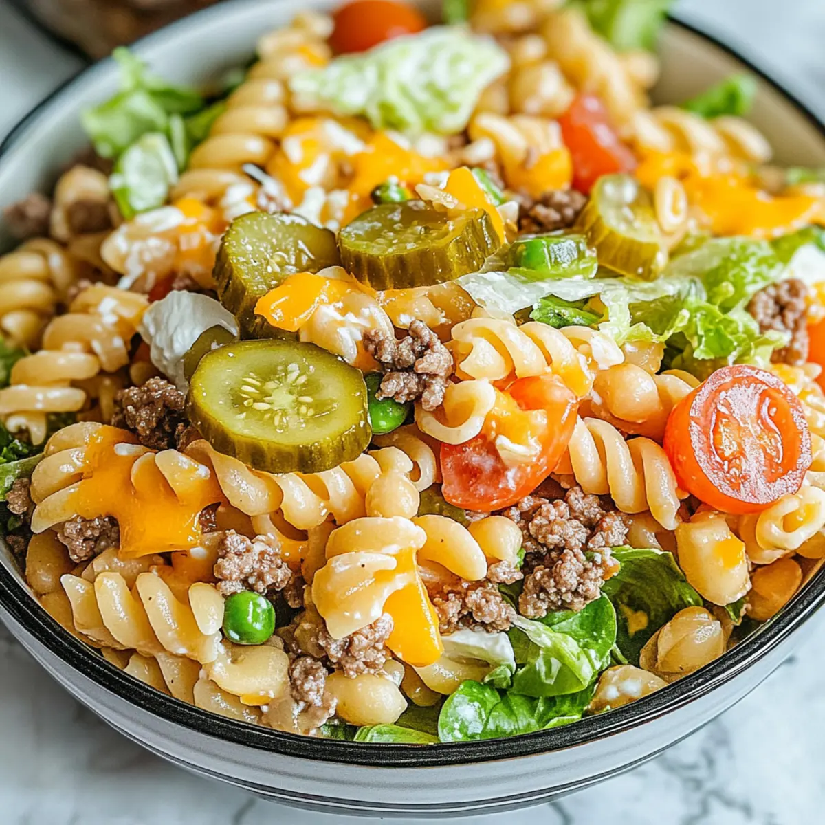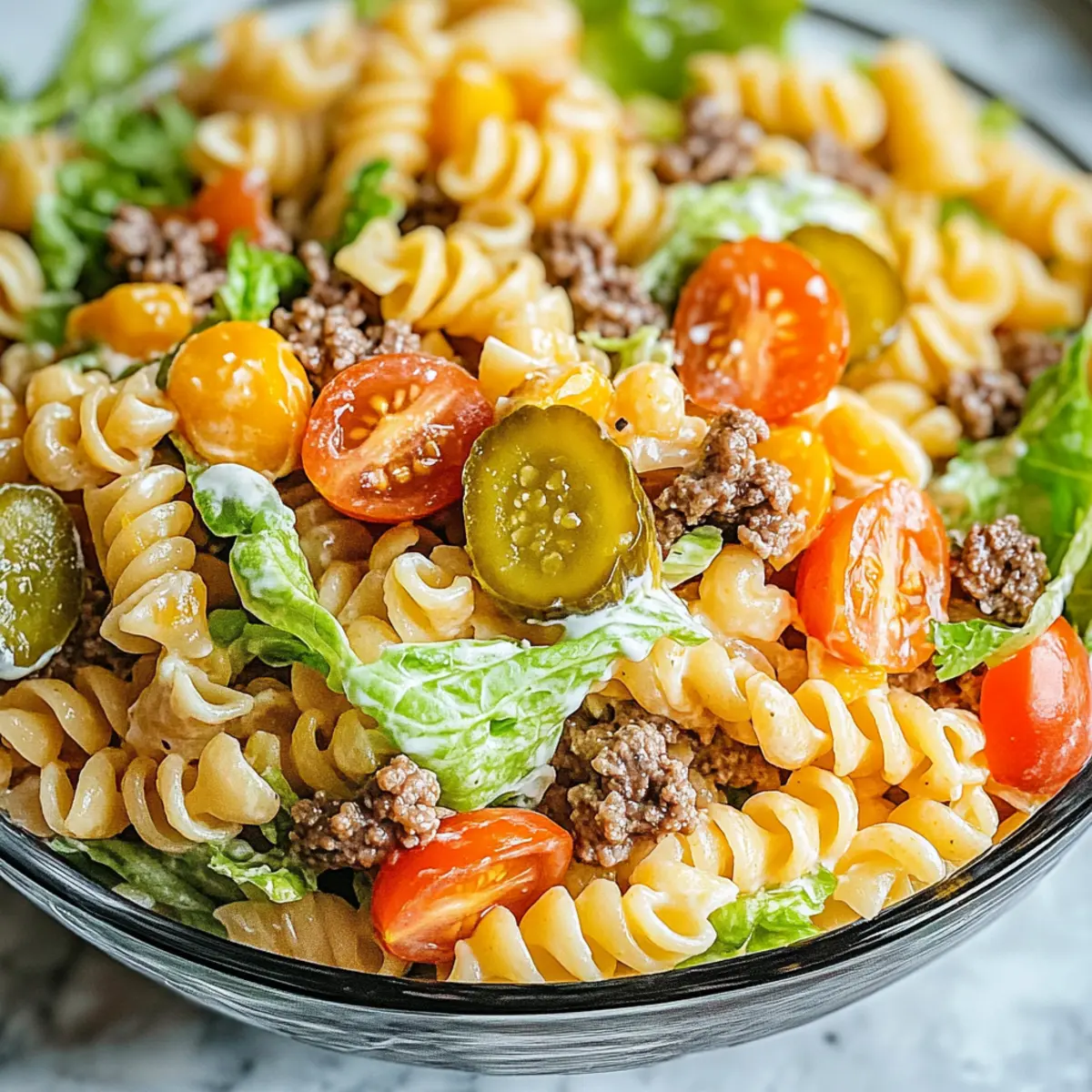 Flavor Explosion: This salad marries the iconic Big Mac flavors with a fresh pasta twist, inviting everyone to dive in.