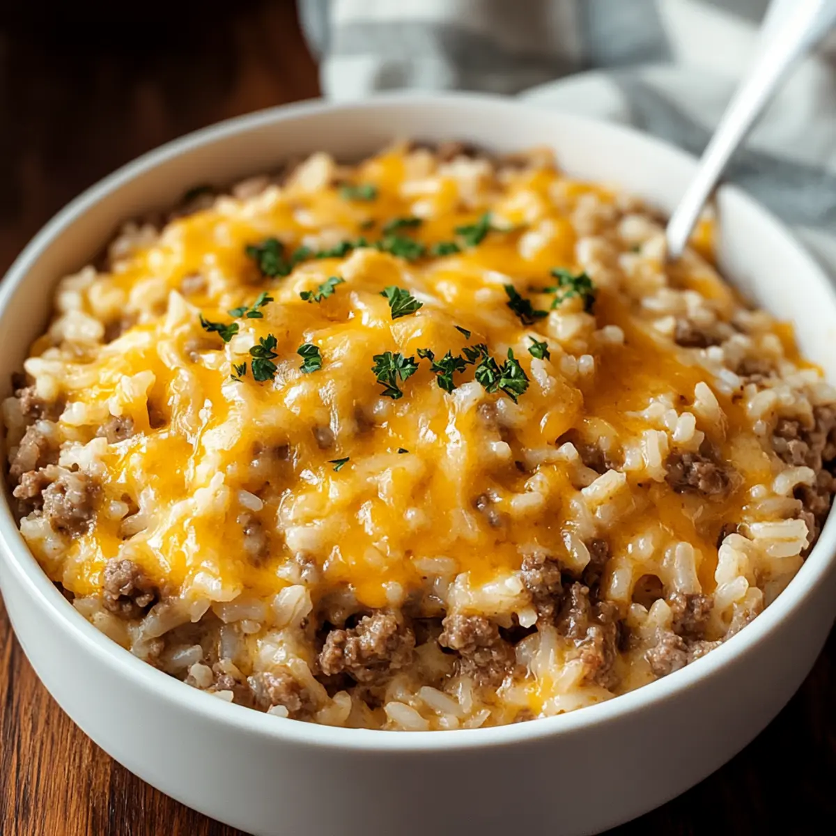 This Cheesy Ground Beef and Rice Casserole is an easy weeknight dinner that promises comfort in every delightful bite!