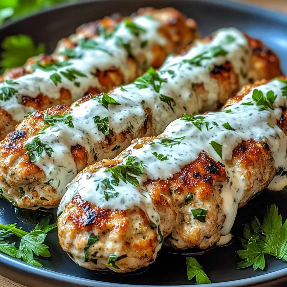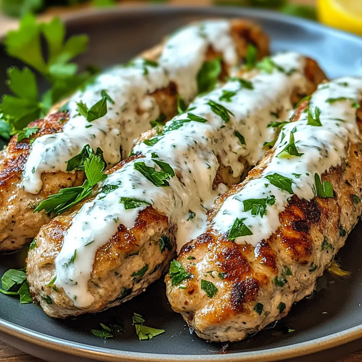 Once your Chicken Kofta are grilled to perfection, arrange them on a serving platter. Drizzle generously with the creamy garlic yogurt sauce and garnish with additional parsley if desired. Serve warm, paired with warm pita bread or a fresh salad, creating a vibrant meal that is sure to please both family and friends. Enjoy the delightful flavors together!