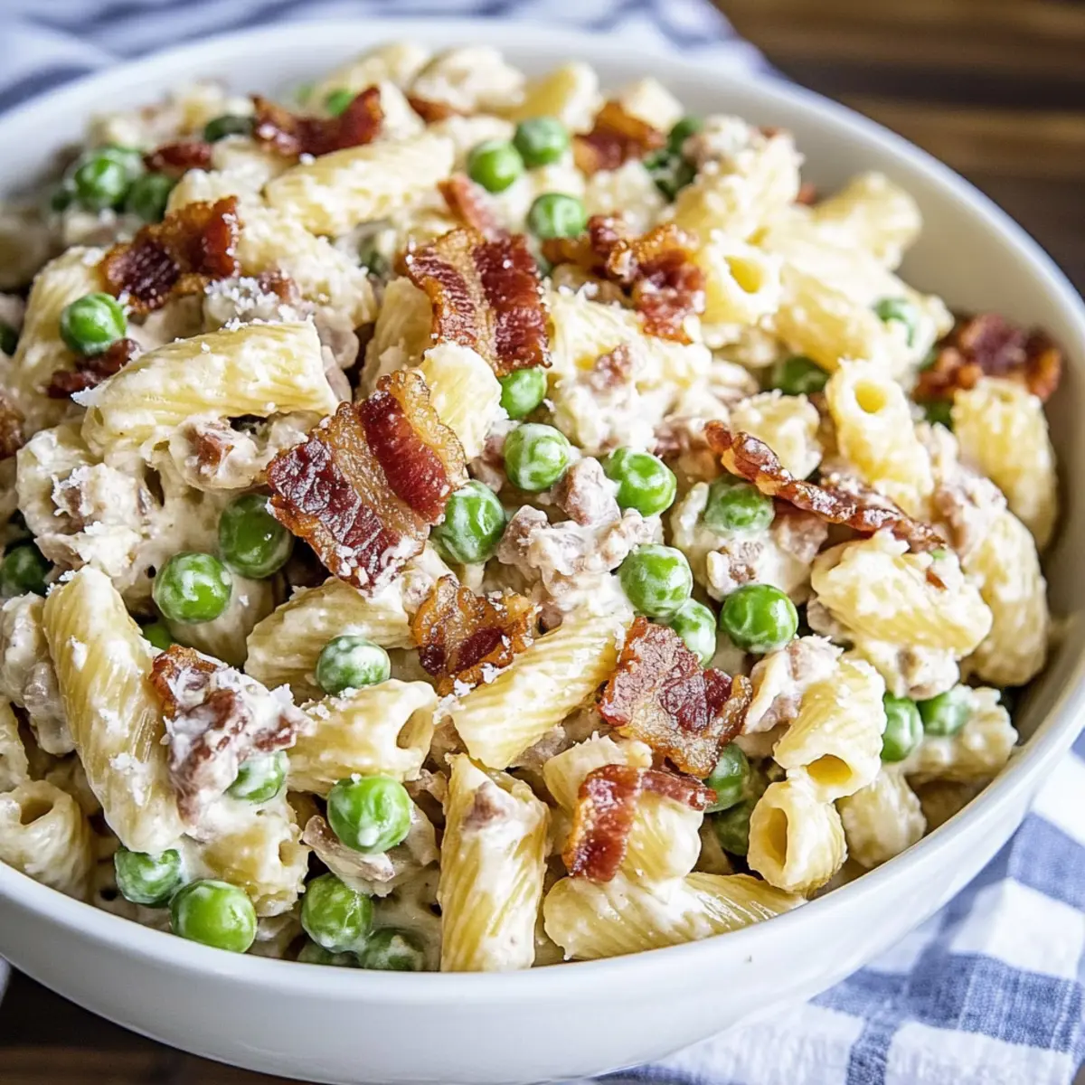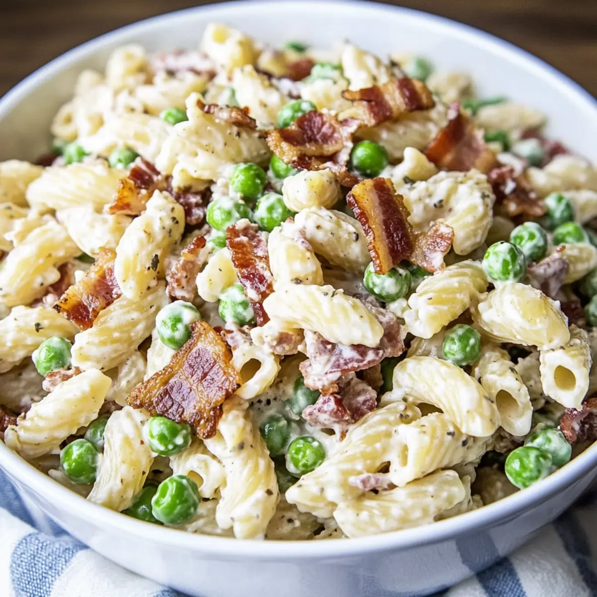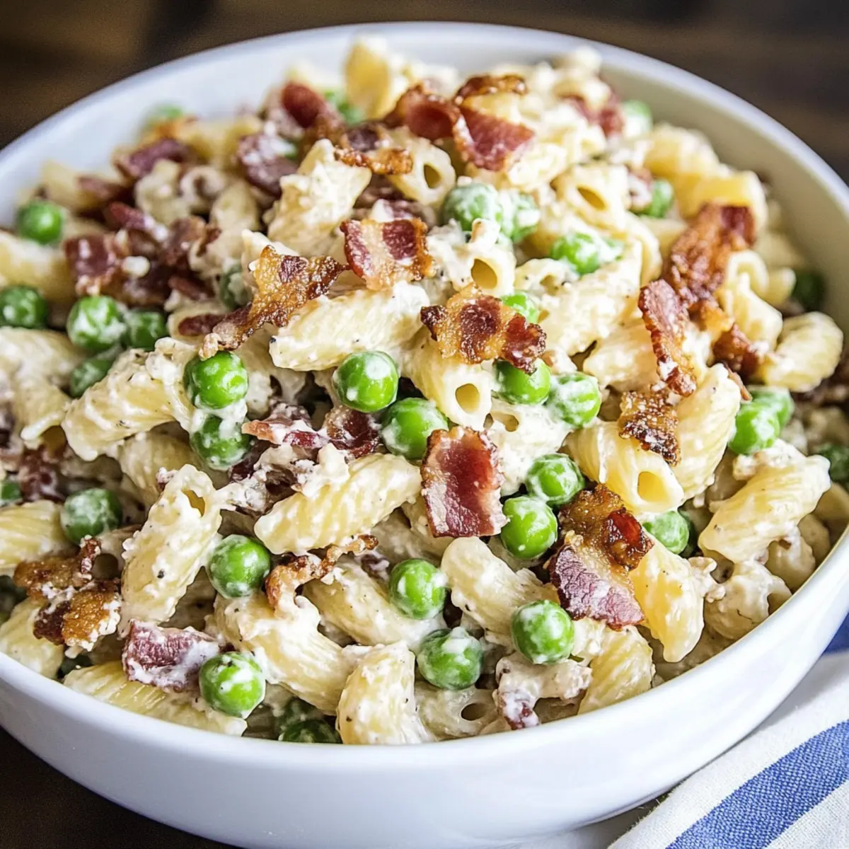 As I stirred the vibrant bowl of creamy pasta salad, the sun began to set, casting golden rays that danced off the glossy noodles. This dish isn’t just food; it’s a celebration of flavors, with crispy bacon, sweet peas, and a luscious dressing that hugs every bite. Whether you’re hosting a potluck or simply longing for a homemade side dish, this creamy pasta salad is your go-to recipe for turning ordinary meals into unforgettable gatherings. With its short prep time and customizable nature, you’ll find it effortlessly adapts to any occasion or taste preference. Curious about how to make this delightful dish your own? Let’s dive into the details!
