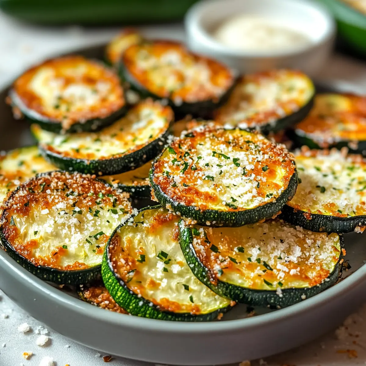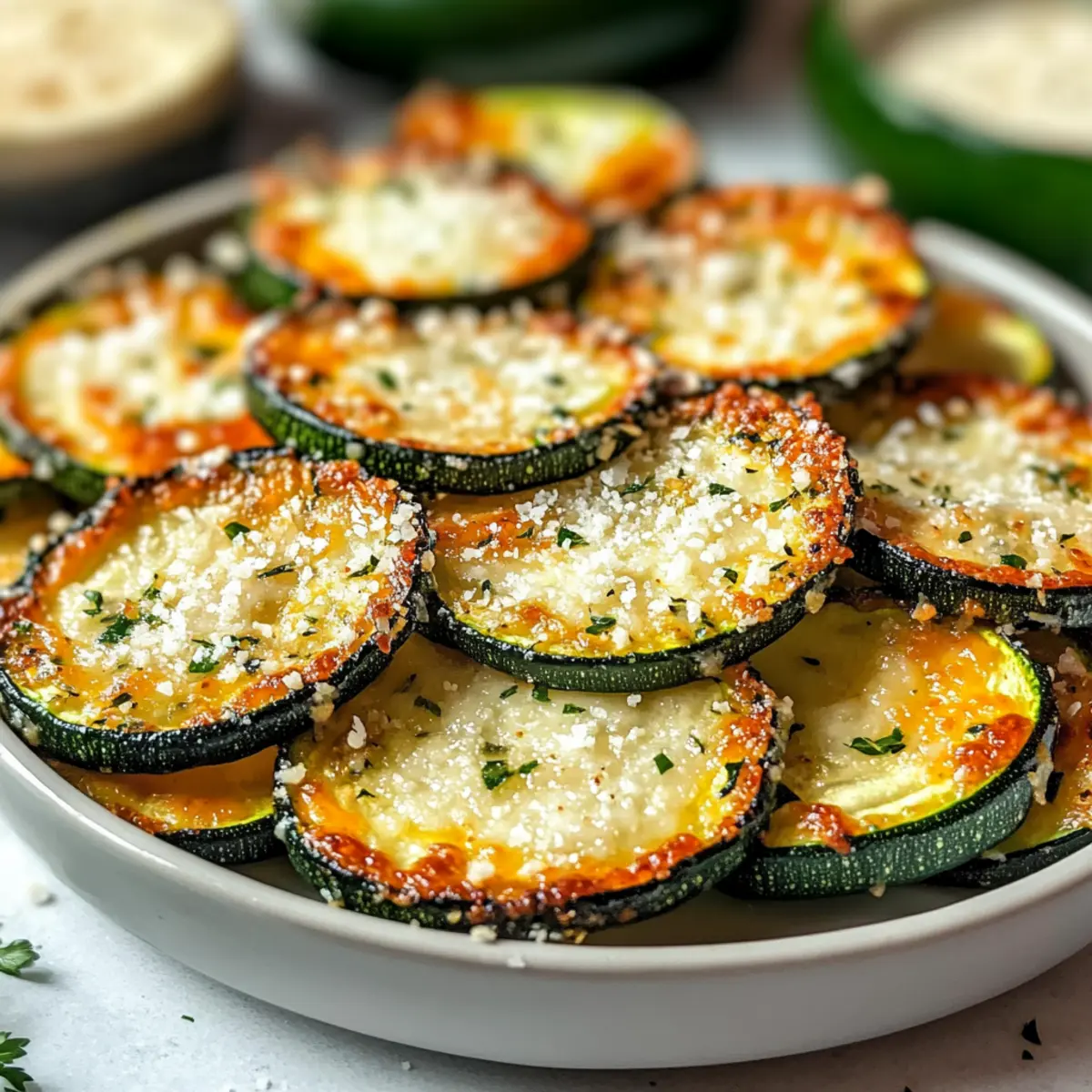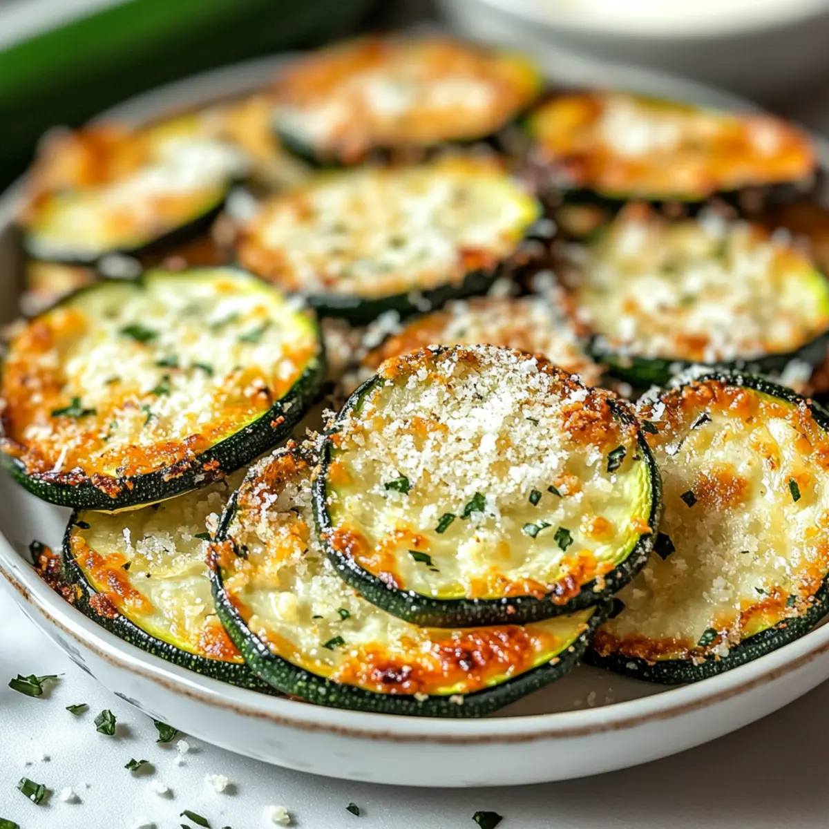 When the zucchini is out of the oven, let it cool for a few minutes before garnishing with chopped parsley or lemon zest for a fresh finish. This added touch brightens up your plated dish and enhances the flavors. Serve your Crispy Baked Parmesan Zucchini immediately, and enjoy the delightful crunch of this healthy snack with your loved ones!