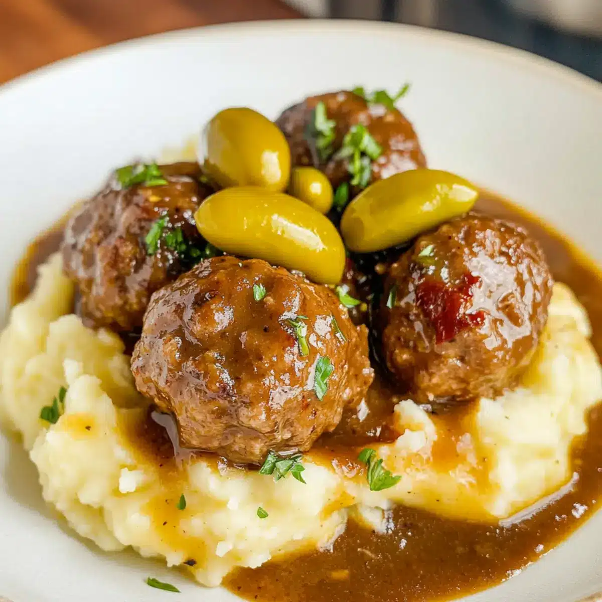 - Vegetarian Delight: Replace meatballs with plant-based ones for a vegetarian version. You won’t miss out on taste as the savory gravy absorbs the flavors beautifully!