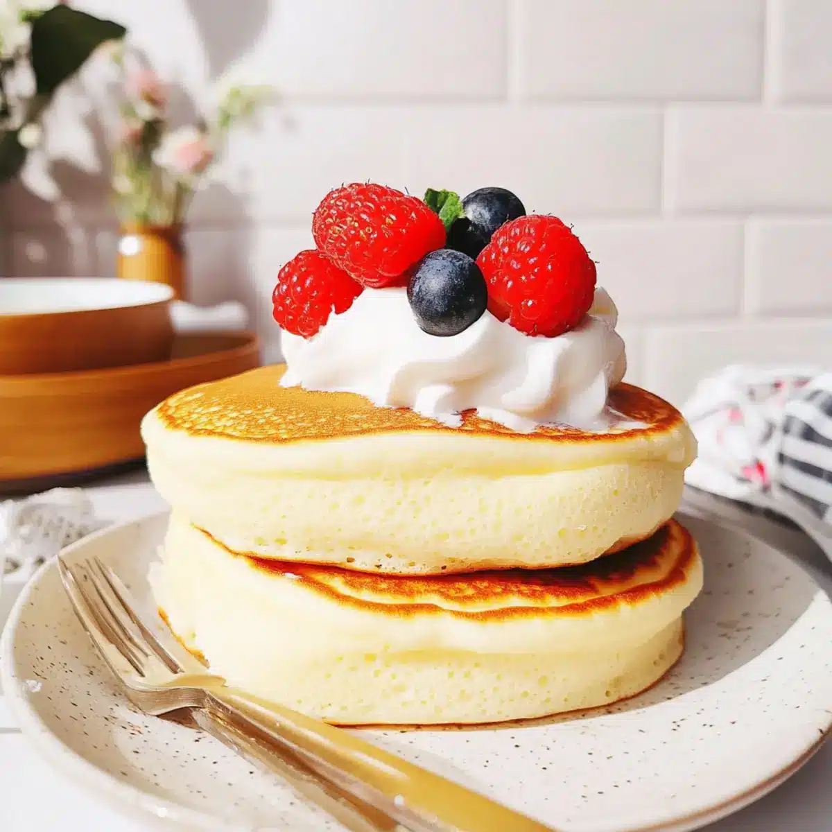 - Optional Toppings – Sweetened whipped cream, assorted berries, powdered sugar, or maple syrup will elevate your pancakes to the next level, making these Fluffy Japanese Soufflé Pancakes even more delightful!