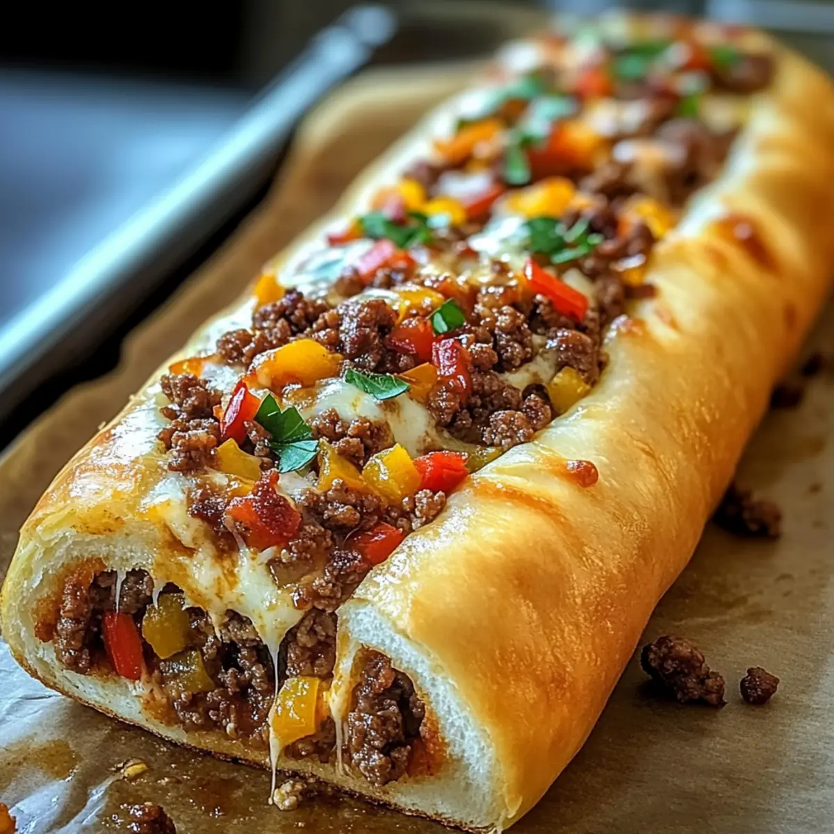 You can easily create a vegetarian Garbage Bread by replacing the ground beef with sautéed vegetables like mushrooms and spinach. Adding ricotta or feta cheese can enhance the flavor while keeping the filling rich and satisfying.