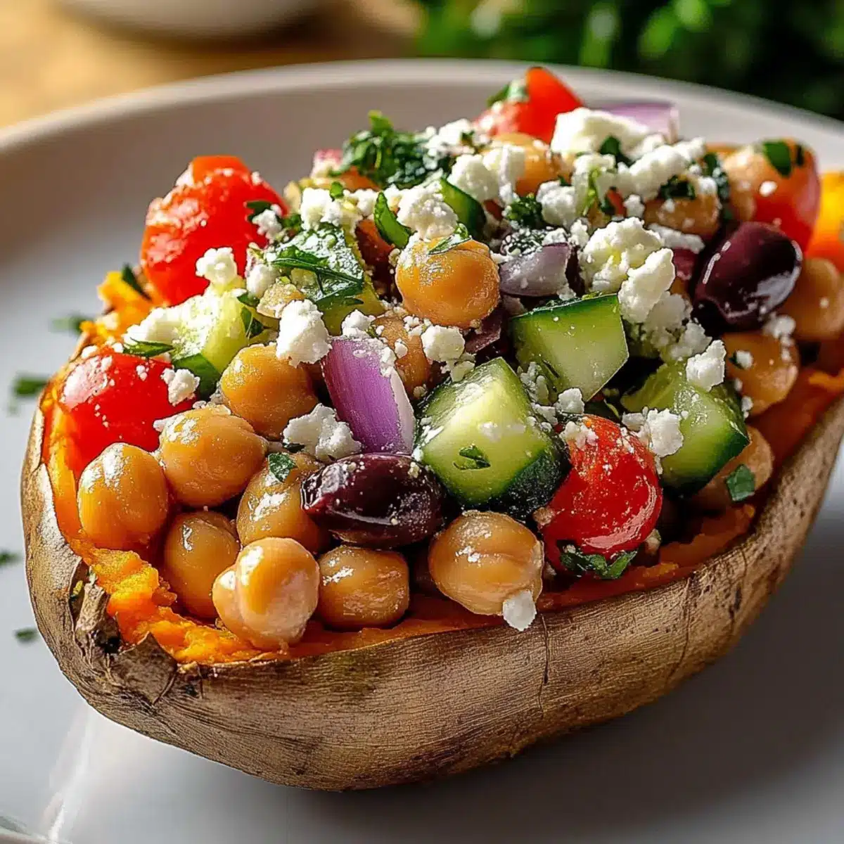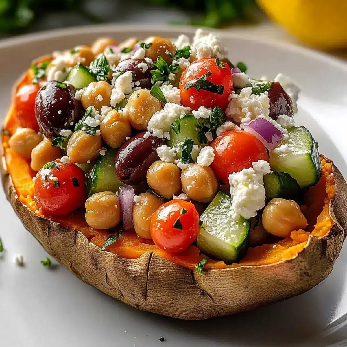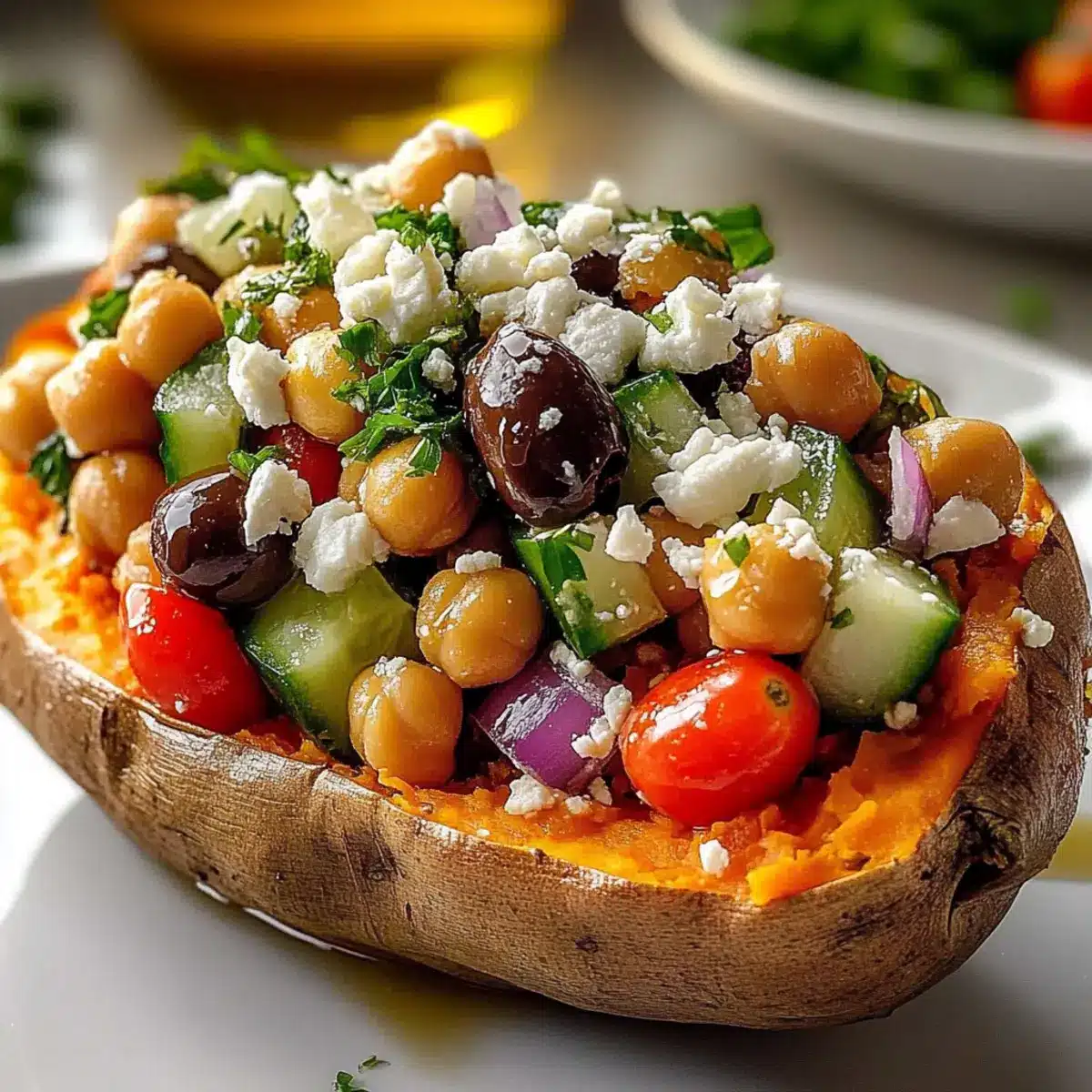 These Mediterranean Stuffed Sweet Potatoes are packed with vibrancy and flavor, making them a wholesome addition to any meal. Enjoy creating this colorful dish!