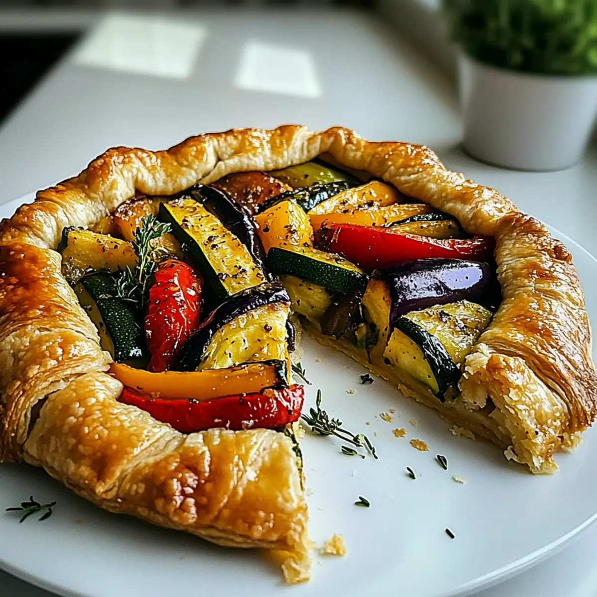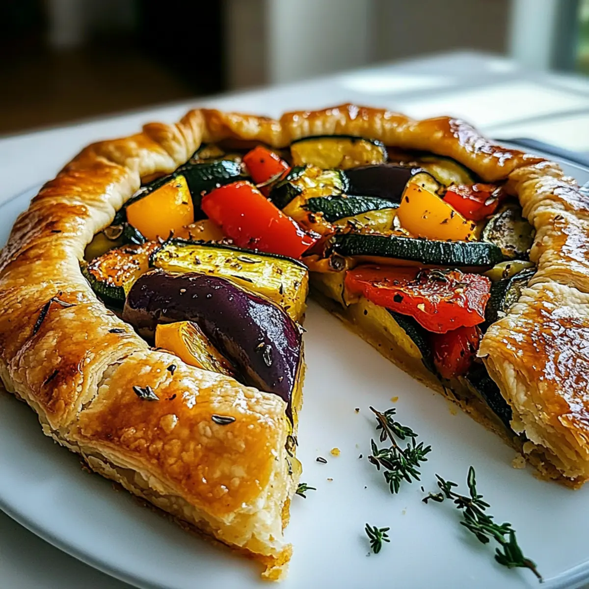 Gently fold the edges of the puff pastry over the filling, creating pleats as you go to keep the center exposed. This method not only enhances the presentation but also ensures the vegetables are visible and the crust bakes evenly. Make sure to tuck any excess pastry underneath for a neat finish.