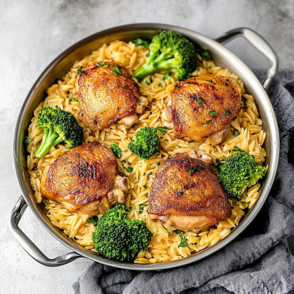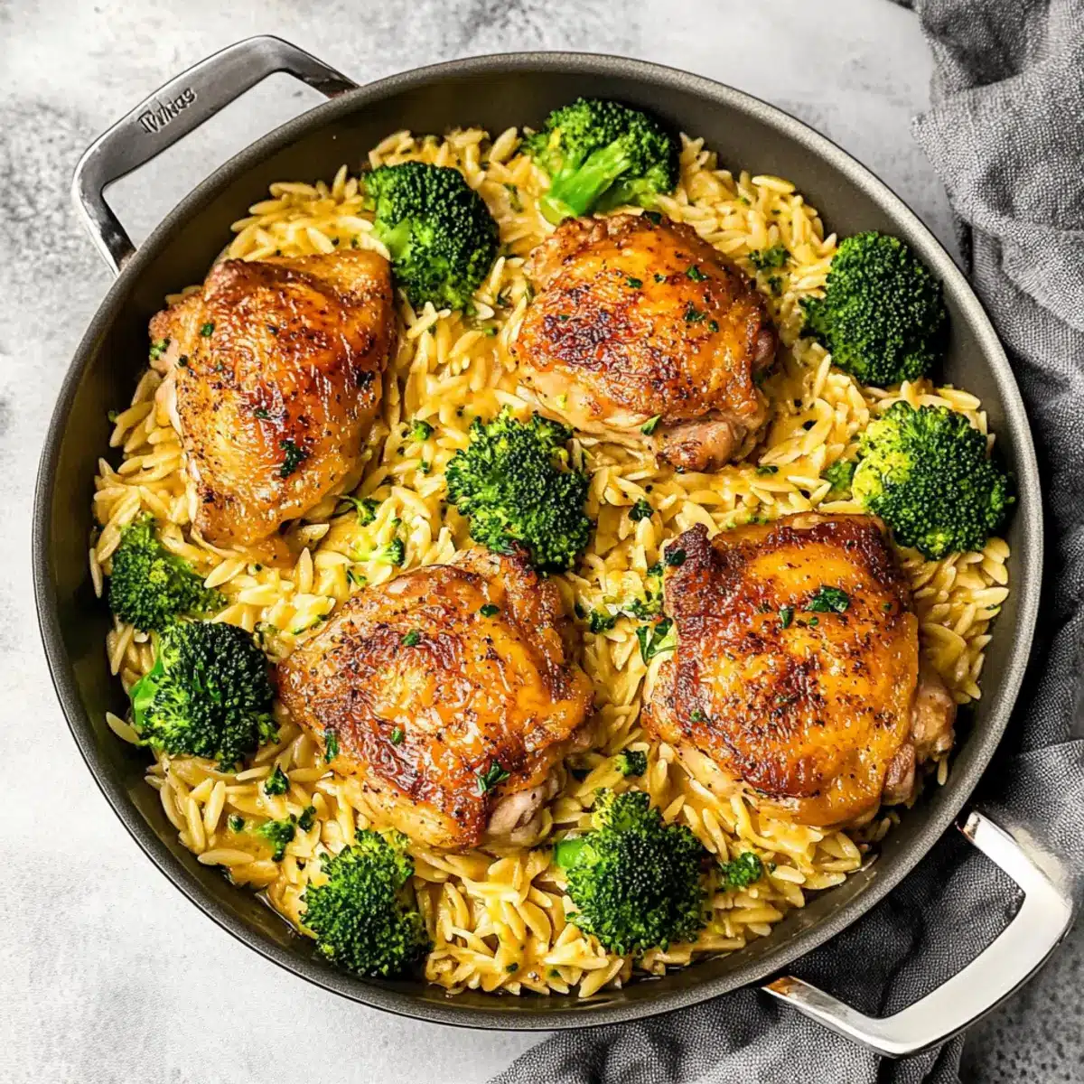 Flavor Explosion: The rich, savory chicken thigh flavor melds perfectly with the cheesy orzo and tender broccoli, ensuring every bite is packed with deliciousness.