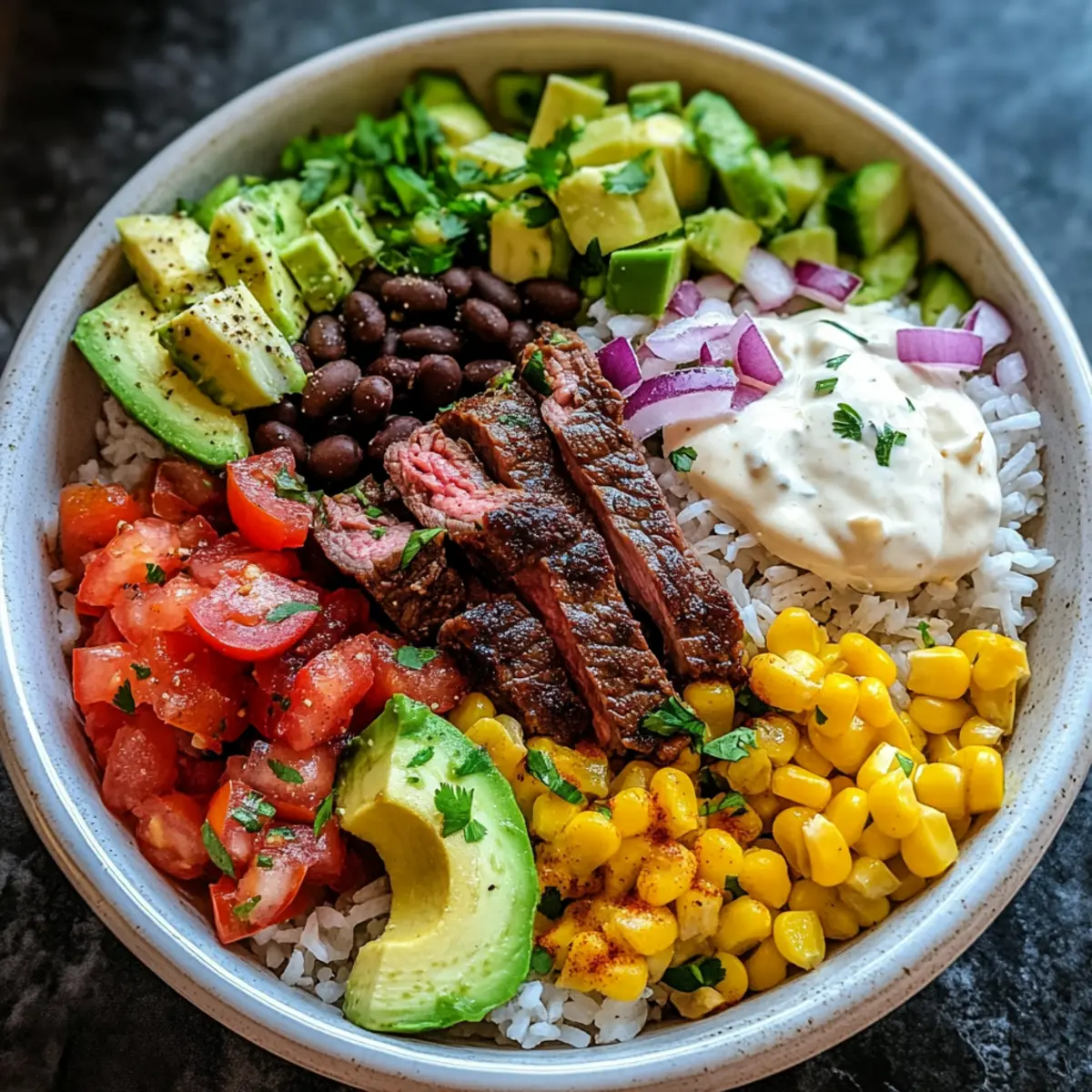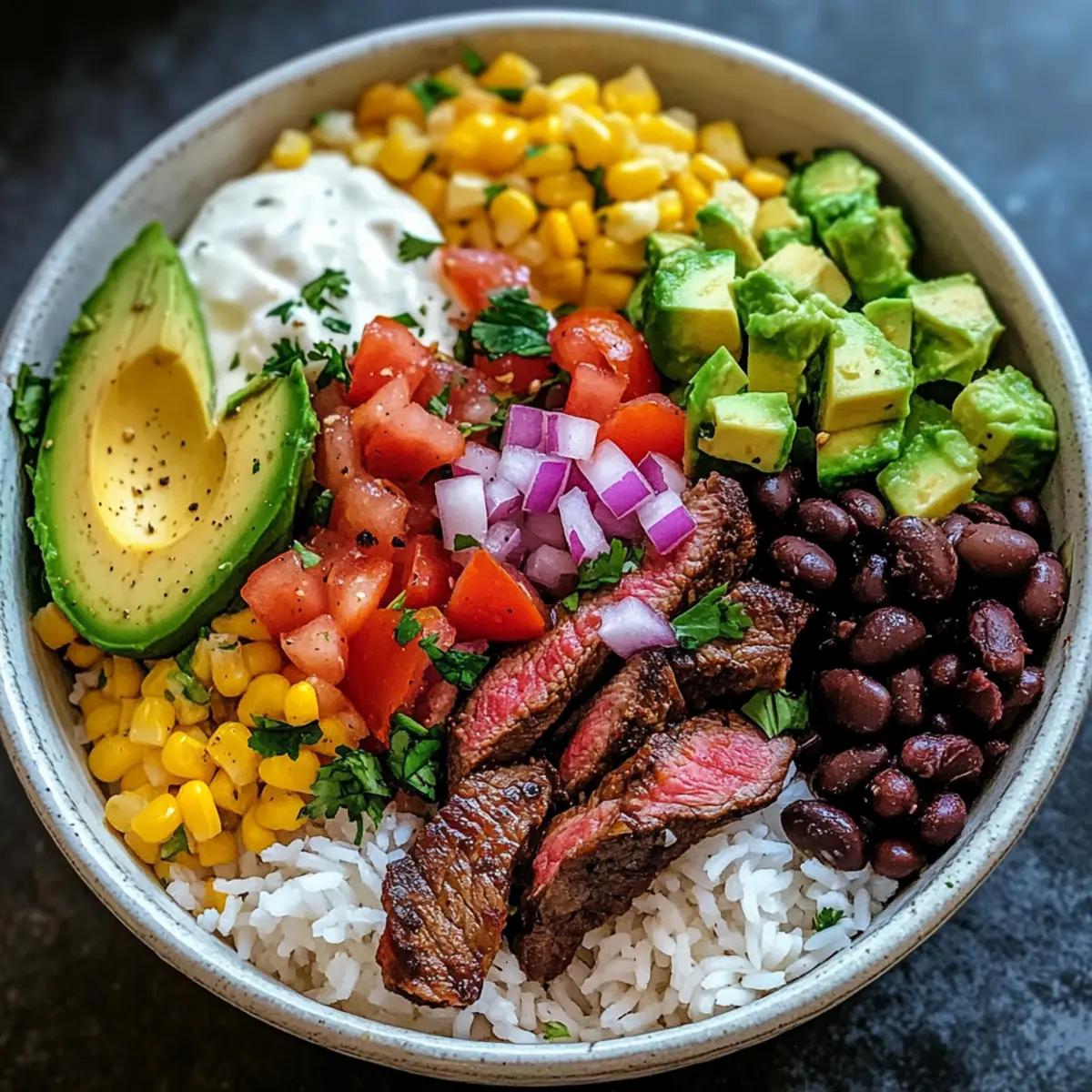 - Assembly Tips: If you’re prepping bowls in advance, layer the rice and beans at the bottom, followed by steak and toppings to keep everything fresh when serving.