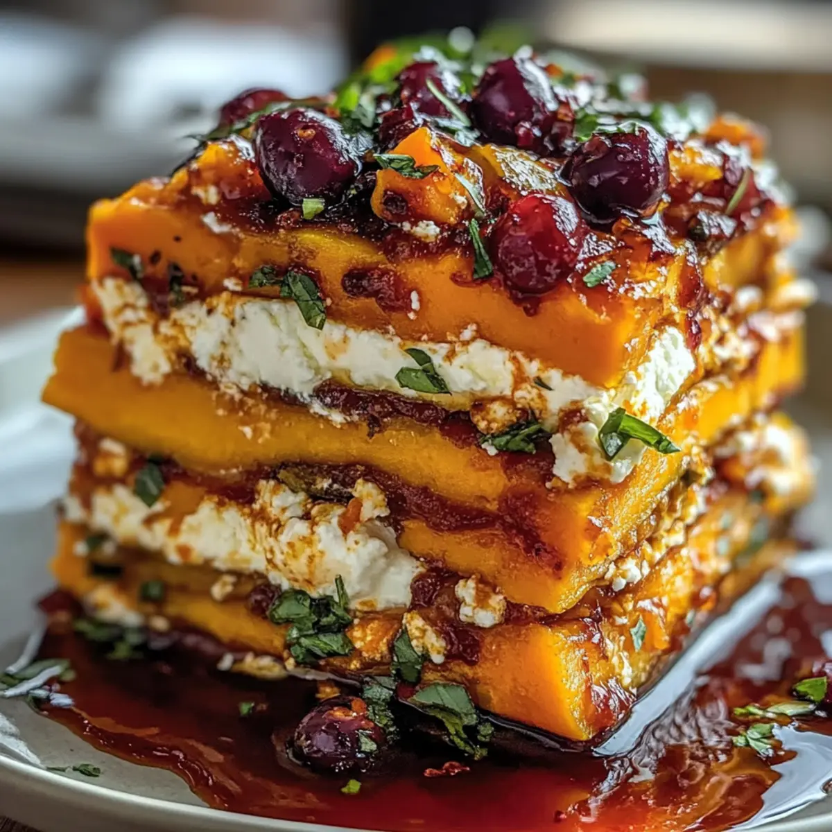 As the leaves turn golden and the air grows crisp, I find myself wanting to cozy up with a dish that captures the essence of autumn. Enter my Layered Sweet Potato Butternut Squash Carrot Lasagna—a vibrant celebration of the season’s finest produce. This recipe not only delights the eyes with its stunning layers but also offers a comforting, wholesome meal that’s perfect for both family dinners and impressing guests. Packed with nutritious veggies and drizzled with a luscious cranberry-honey glaze, it promises to elevate your vegetarian cooking game. Plus, you’ll love that it’s easy to customize, whether you choose to swap feta for goat cheese or go entirely dairy-free! Ready to dive into the world of layered goodness? Let’s get cooking!
